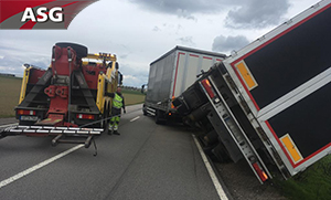 So stellte unser Mitarbeiter den Anhänger in den Windschatten des Bergefahrzeuges und entfernte beide Seitenplanen.